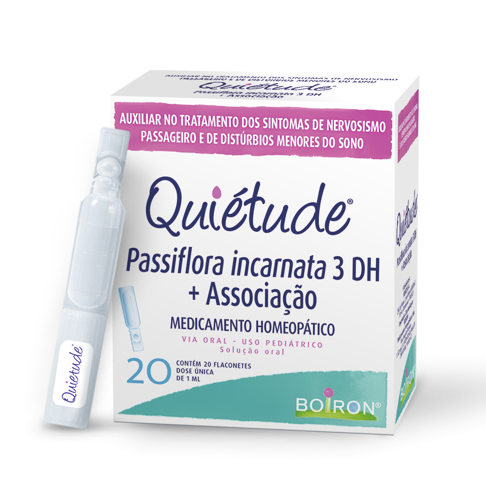 QUIÉTUDE É UM MEDICAMENTO. SEU USO PODE TRAZER RISCOS. PROCURE O MÉDICO OU FARMACÊUTICO. LEIA A BULA. SIGA CORRETAMENRE O MODO DE USAR, NÃO DESAPARECENDO OS SINTOMAS PROCURE UM PROFISSIONAL DE SAÚDE. Passiflora incarnata 3 DH + Associação. INDICAÇÕES: QUIÉTUDE é indicado como auxiliar no tratamento dos sintomas de nervosismo passageiro e de distúrbios menores do sono. CONTRAINDICAÇÕES: Quiétude não deve ser utilizado por pacientes com hipersensibilidade (alergia) aos componentes da fórmula. Medicamento dinamizado notificado junto a ANVISA conforme RDC nº 721 de 2022. AFE Nº1.06916.2. DEVE SER UTILIZADO POR VIA ORAL. ESTE MEDICAMENTO NÃO DEVE SER INJETADO. NÃO INSTILAR NOS OLHOS OU OUVIDOS OU NARIZ. APÓS ABERTURA DO SACHE DE ALUMÍNIO, VÁLIDO POR 3 MESES.